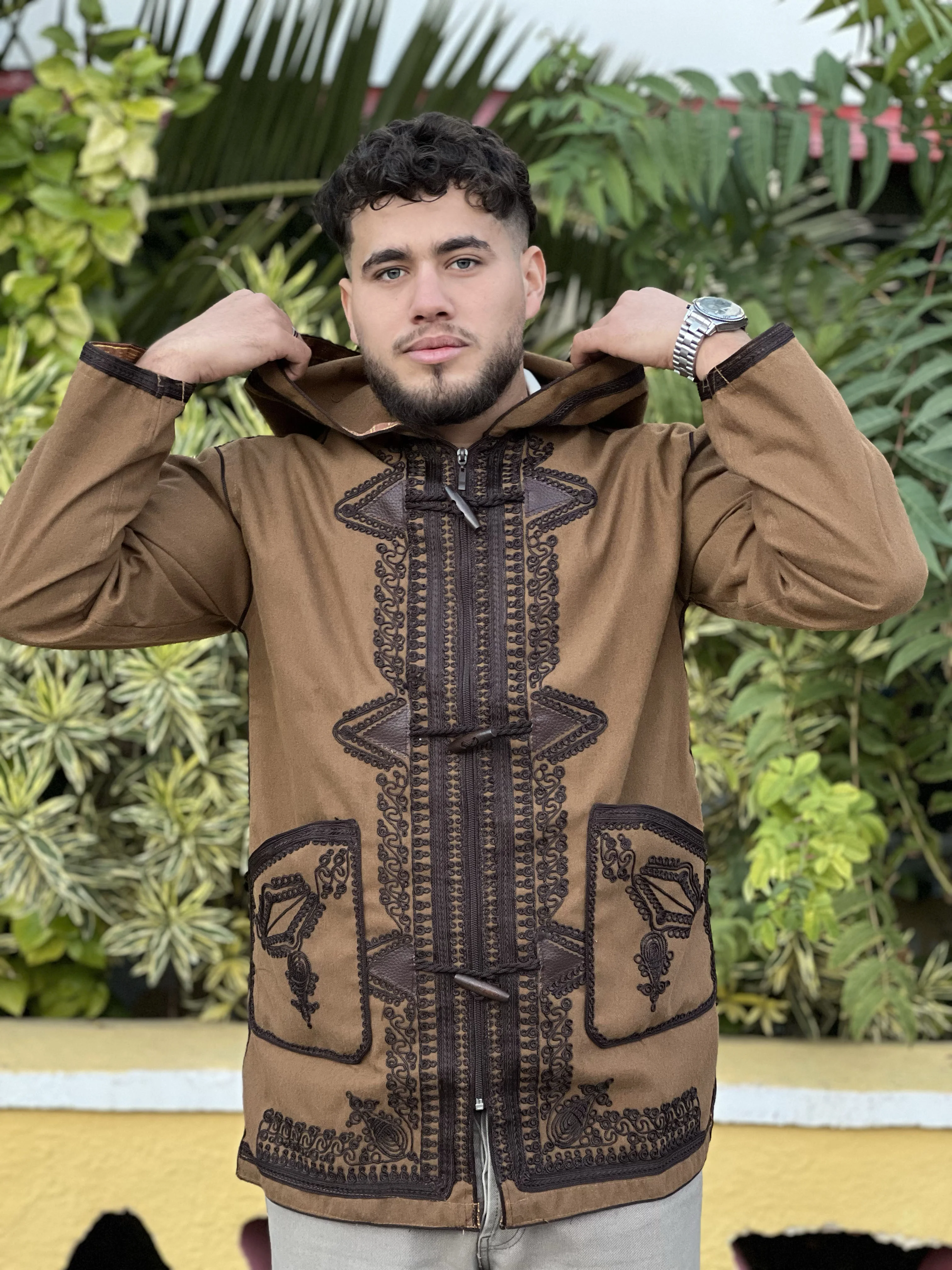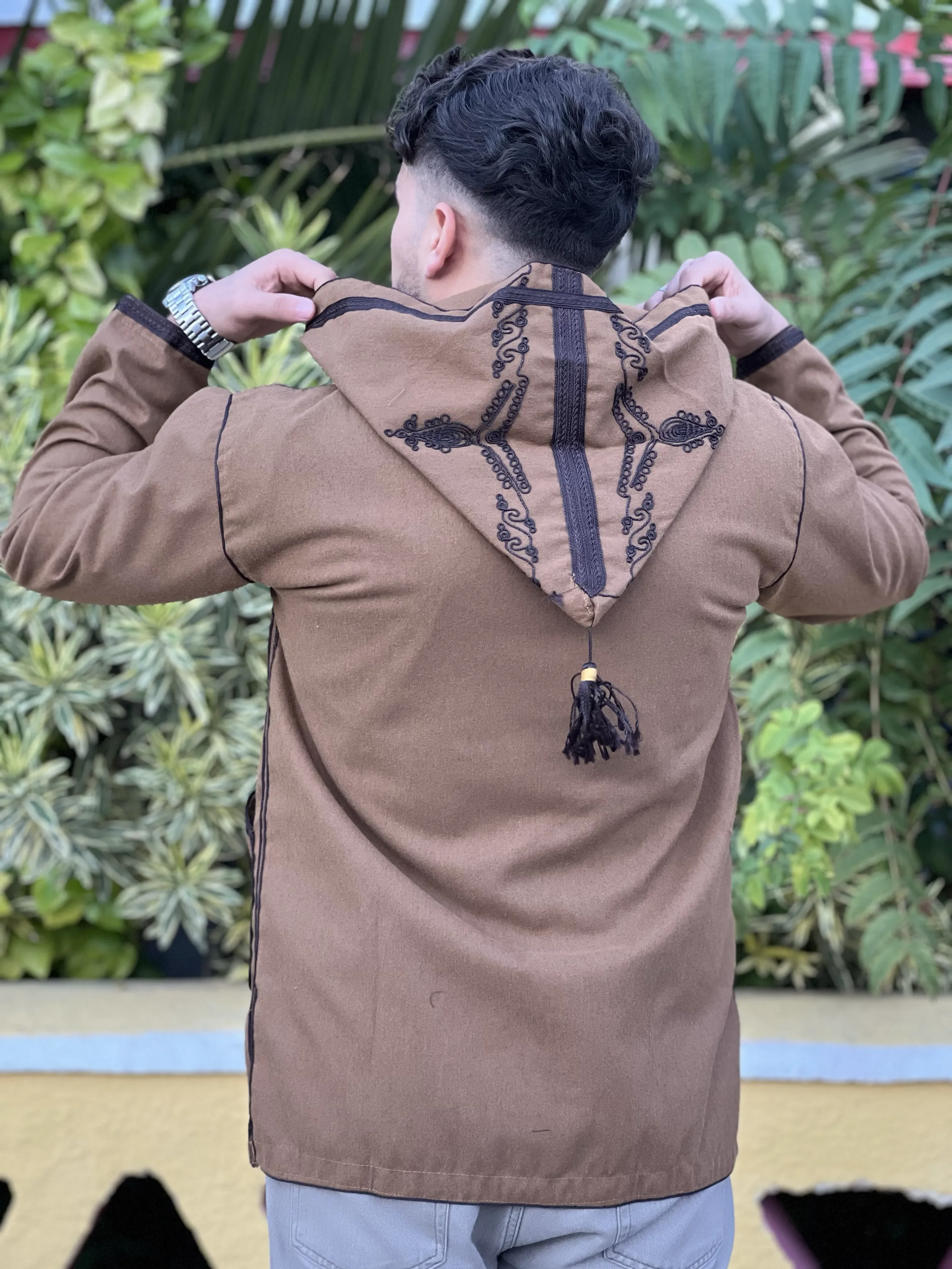 Capichon Marron Brodé Au Marron Foncè | كابيشو مطروز وبر بني